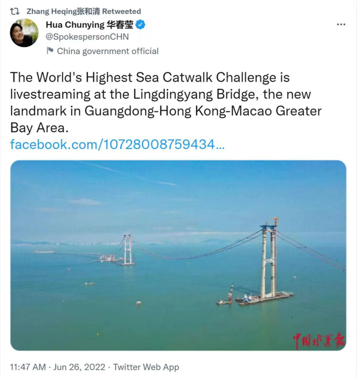 今天这个中国超级工程直播,被华春莹推荐了!