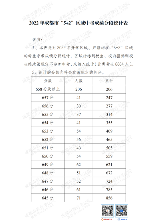 文末附“5+2”区域中考成绩分段统计表