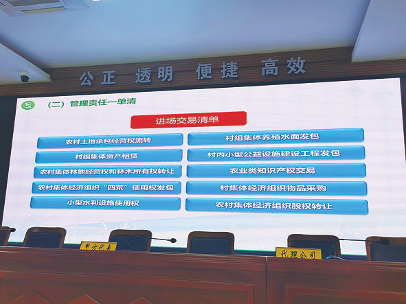 2022年6月9日,盐城市盐都区农村产权交易中心,大屏展示的进场交易清单第一项就是“农村土地承包经营权流转”。新华每日电讯记者 段羡菊 摄