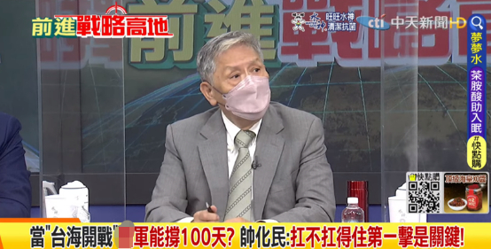 帅化民说,台湾的防卫能力不是政客讲的那一套,他认为,“这个仗要不要打,不要打要怎么避,避的话怎么求和,这才是高层要做的事”。至于台军能不能挺过100天,帅化民认为没法算。