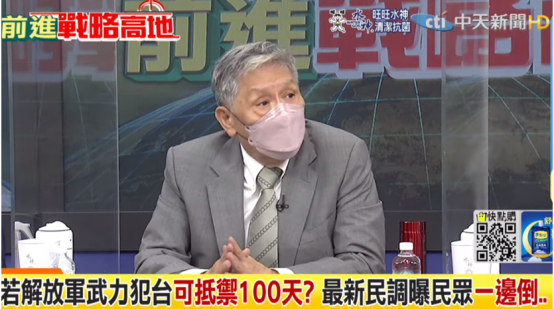 台湾中天新闻25日的政论节目《前进战略高地》中,对于大陆如果“武力攻台”台军能不能撑不过100天的问题,帅化民表示,这要从几个角度来看,要看大陆准备以什么方式来“武统”台湾。