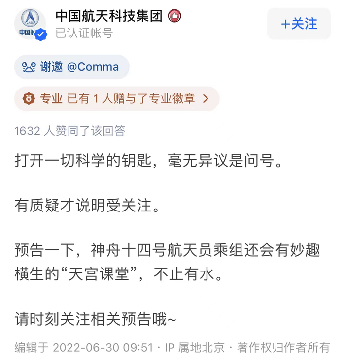 这些知识点在过去的天宫课堂中都曾讲解过,“我们的太空”由此感慨:“多读书,多看之前的视频,要有独立思考的能力……”