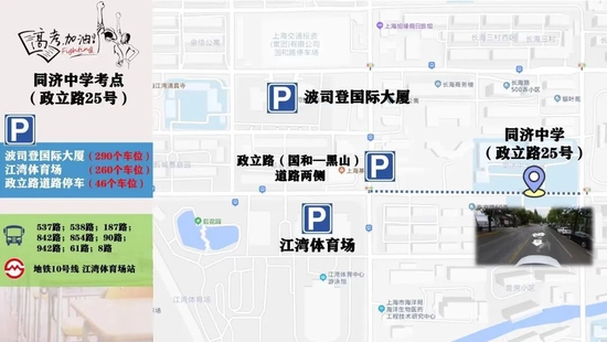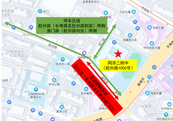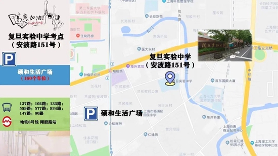 为了确保高考顺利进行,静安交警在高考期间在辖区11个考点(其中3个为应急备用考点)周边设立临时停靠车位(具体停车位设置请以交警现场指示为准)。