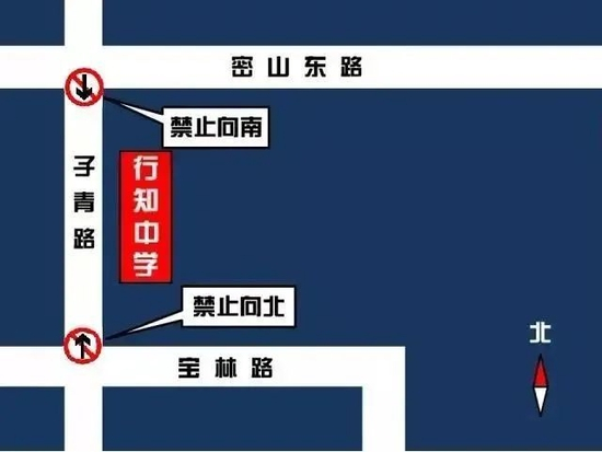对三个考点(扬子中学、民本中学、崇明中学)周边部分道路实行交通管制措施。