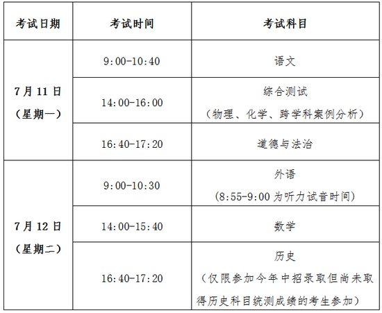 4、曙光中学考点,7日、8日无考试,9日安排外语听说测试。