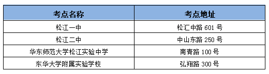 今年设有奉贤中学、致远高级中学、奉贤中等专业学校、曙光中学、教育学院5个考点,具体安排如下: