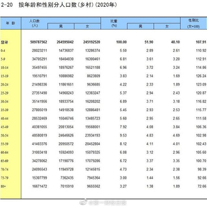 国家统计局近期公布《中国人口普查年鉴-2020》,详细披露了第七次人口普查的分项数据。