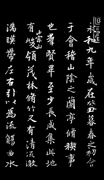 虞世南摹《兰亭序》帖(局部),乾隆曾将宫中收藏的八种《兰亭序》版本刻在石柱上,是为“兰亭八柱”,虞世南摹《兰亭序》为第一柱。