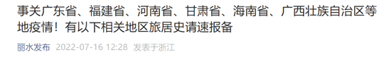 据台州发布消息,请近7日内有上海市,安徽省蚌埠市怀远县,广西壮族自治区北海市,广东省,甘肃省兰州市,河南省驻马店市、平顶山市等地旅居史的来(返)台州人员立即向所在单位、社区(村)、入住宾馆报告,并通过“台州防疫自主申报”小程序进行申报,主动配合落实相应健康管理措施。