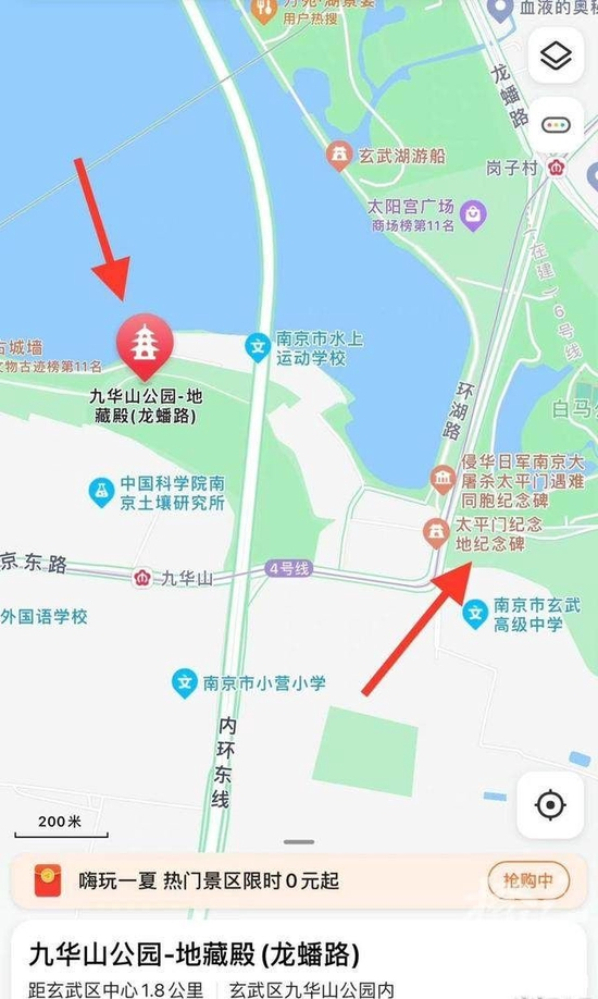 据悉,玄奘寺,位于南京市玄武区北京东路九华山公园内,北临玄武湖,东接太平门,西邻台城。地图显示,该地距离侵华日军南京大屠杀遇难同胞纪念馆和太平门遇难同胞纪念碑只有不到半个小时的车程。