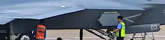 这张照片隐身处理方面,这架原型机的两台发动机的尾喷口都带有锯齿设计,发动机和机身的衔接过渡位置上,也进行了隐身化处理,“战区”栏目推测这架原型机采用的是WS-21发动机,这种发动机可以视作是WS-13发动机的隐身化改进型。