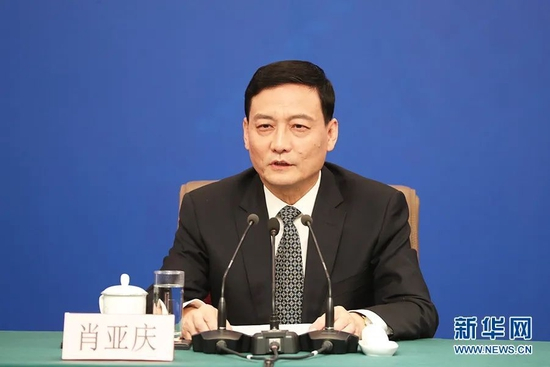 ·肖亚庆在2022年两会“部长通道”上回答问题。
