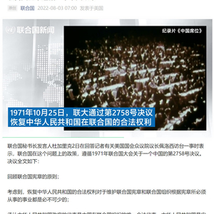联合国回应佩洛西窜访台湾:重申遵循一个中国政策