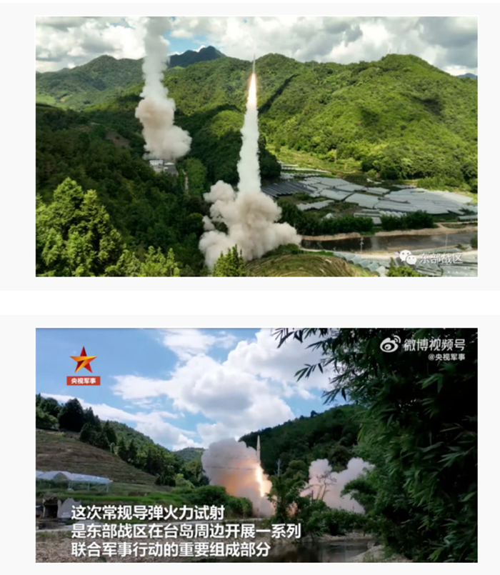东部战区新闻发言人施毅陆军大校4日表示,当日下午,中国人民解放军东部战区火箭军部队对台岛东部外海预定海域,实施多区域、多型号常导火力突击,导弹全部精准命中目标,检验了精确打击和区域拒止能力。整个实弹发射训练任务圆满完成。随后官方公布了此次演习中东风15B导弹的发射画面,以及导弹精准命中台湾岛东部、北部、以及南部海域三个演习区靶场的示意画面。军事专家指出,此次演训中,我军常规导弹部队针对性地展现多项关键能力,体现出火箭军“首战用我,用我必胜”的特殊作用。