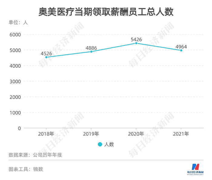 奥美医疗在投资者交流会上表示,“2020 年并不是一个常态化下经营的年份”,因此,若剔除2020年业绩,2018年、2019年以及2021年,无论是营收规模还是净利润,奥美医疗均保持着持续增长,但从员工数量及高管薪酬上看,2021年的数据均出现较大下降。