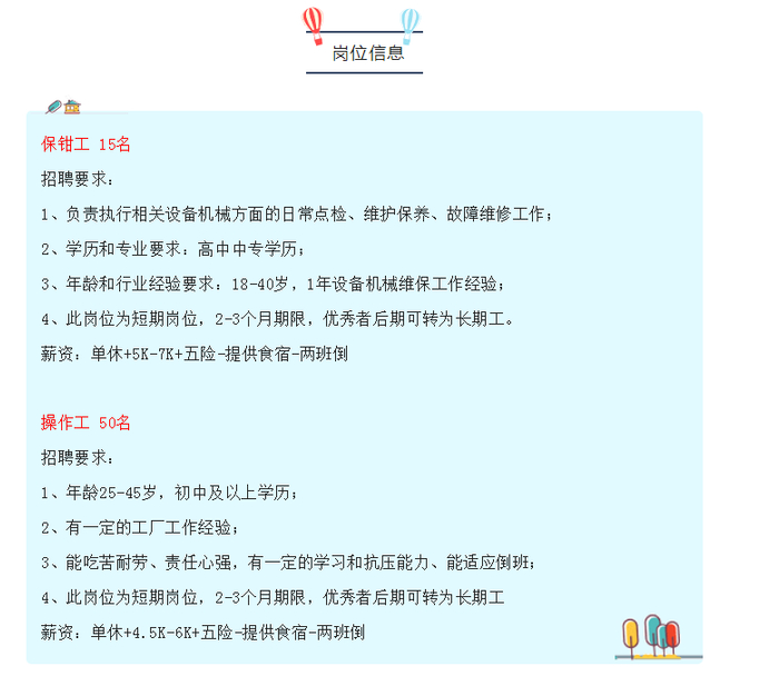2020年5月,掇刀就业公众号发布荆门奥美的招聘公告,拟招聘保钳工15名、操作工50名,招聘要求中均提及“此岗位为短期岗位,2~3个月期限,优秀者后期可转为长期工”。