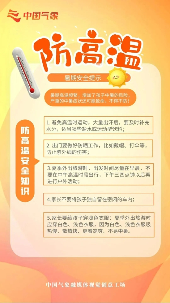 对于公众而言,陈涛提醒,高温天气期间要尽量的减少长时间户外活动 ,及时补充水分,避免热射病及其他高温易诱发的潜在疾病影响。特别需要注意的是,正值暑期,在炎热的天气下,休假在家的学生游水避暑时,一定要注意远离危险水域,防止发生溺亡事故 。