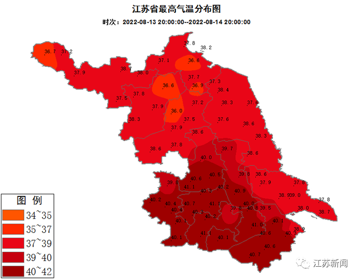 苏南大部分地区都超过了40℃
