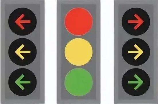■ 左转/掉头:首先看左侧的箭头灯,红灯停,绿灯行;如果不亮,就看中间圆形灯,只要绿色就走。