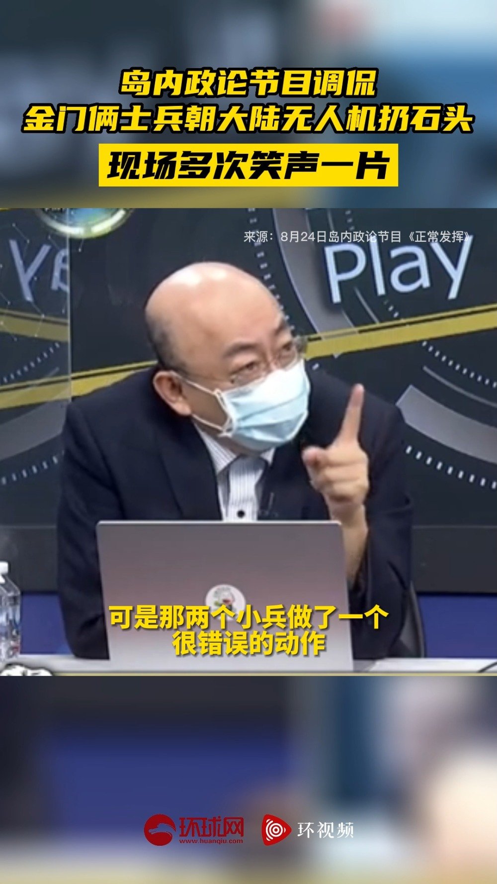 岛内政论节目调侃金门俩士兵朝大陆无人机扔石头,现场多次笑声一片