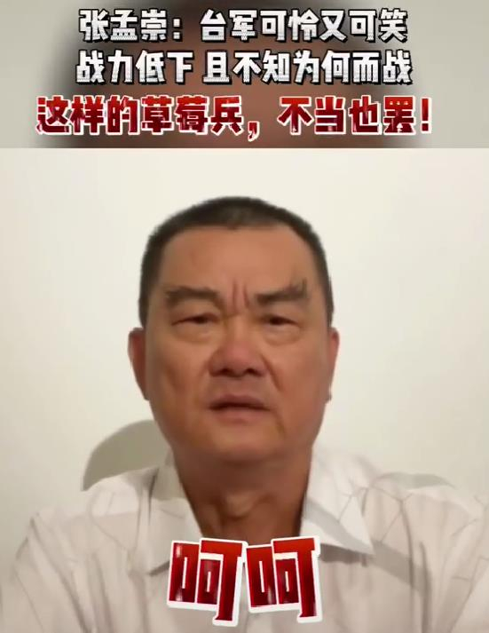 “呵呵!当兵当到这个份上,真是可怜又可笑,难怪台湾年轻人不愿意当兵,现在台军主战部队缺员达到25000人,台湾年轻人不愿意当兵,不仅仅是因为台军战力低下,更重要的是他们不知道为何而战、为谁而战,当兵本来是为了保家卫国,可是在台湾当兵不但不是保家卫国,反而变成祖国统一的障碍。当成这样的兵,即使战死,也只是‘台独’的炮灰而已。这样的草莓兵,不当也罢!”张孟崇说道。