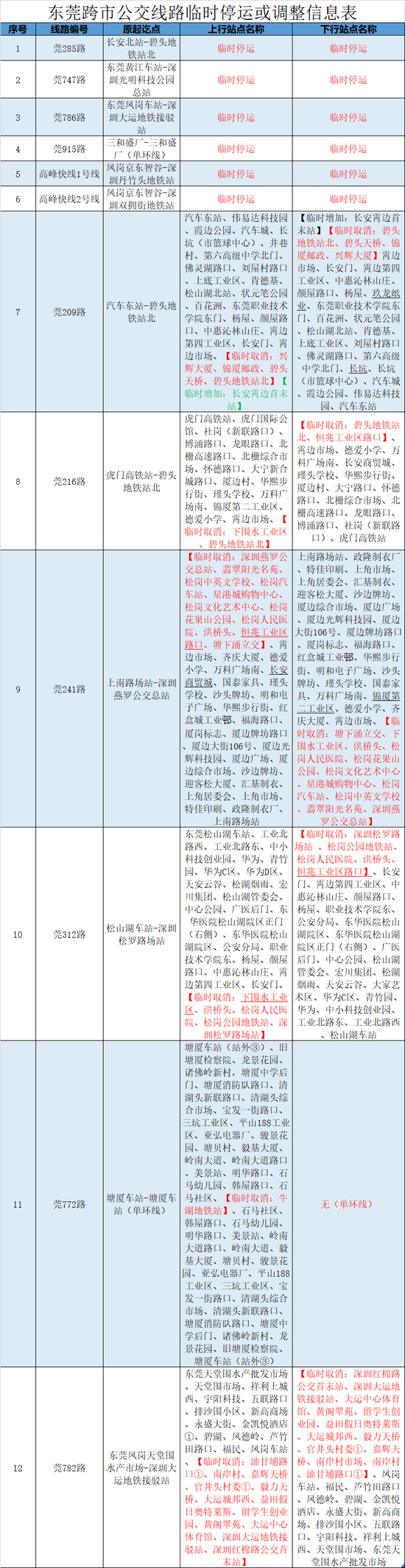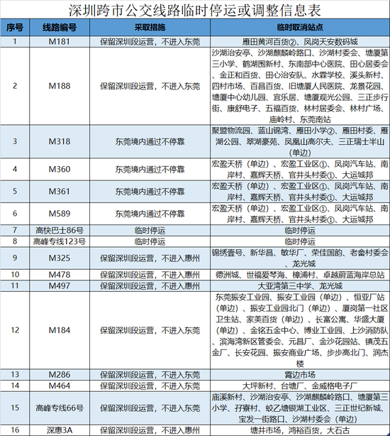 即日起,深圳所有跨市公交线路临时取消跨市段站点!