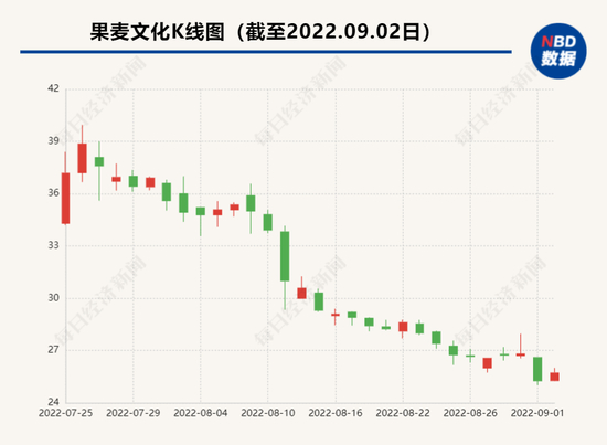 截图来源:果麦文化半年报 据上游新闻报道,针对两人作品被下架一事,9月1日,果麦文化(301052,股价25.71元,市值18.52亿元)证券部工作人员向记者表示:“不方便回答。”实际上,果麦文化股价在最近28个交易日已跌去30.83%。