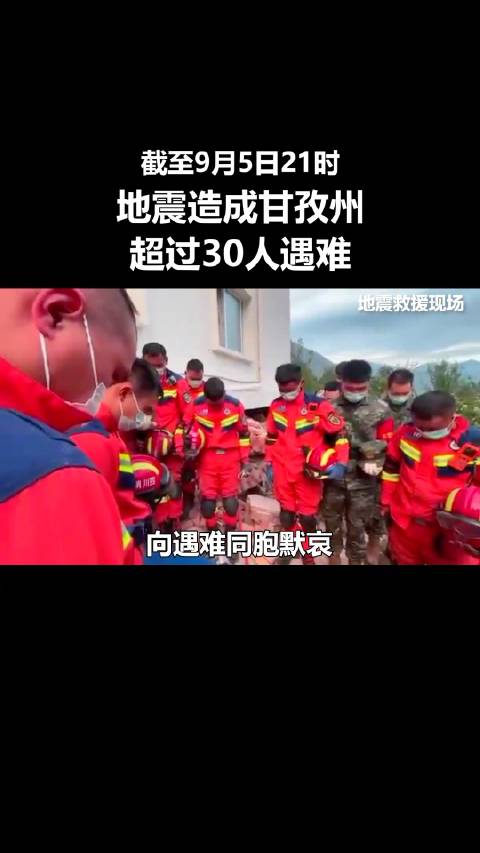 [悲痛!#泸定地震已致超30人遇难#]截至9月5日21时,泸定地震已造成甘孜州超过30人遇难。救援现场,救援人员脱帽,向遇难同胞默哀。送别…#救援人员脱帽向遇难同胞默哀#
