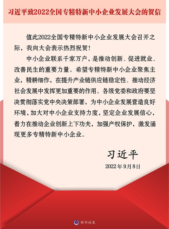 习近平致信祝贺2022全国专精特新中小企业发展大会召开强调 着力在推动企业创新上下功夫 激发涌现更多专精特新中小企业