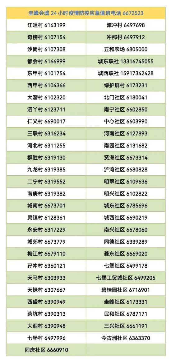 棠下镇、村疫情防控报备电话
