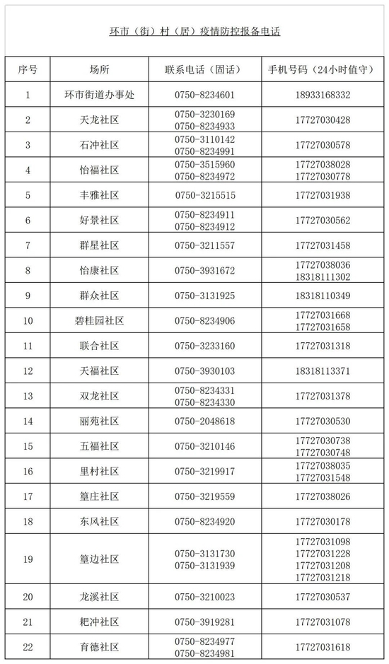 环市街道办事处、社区疫情防控报备电话