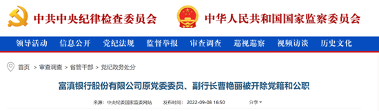 据中央纪委国家监委网站,云南省纪委监委消息:日前,经云南省委批准,云南省纪委监委对富滇银行股份有限公司原党委委员、副行长曹艳丽严重违纪违法问题进行了立案审查调查。