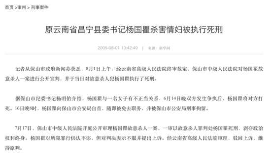 然而2005年6月,保山市发生了一起杀人案。涉事者正是杨国瞿。