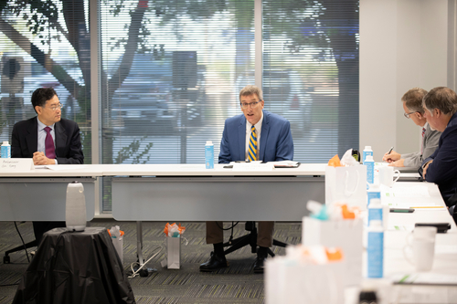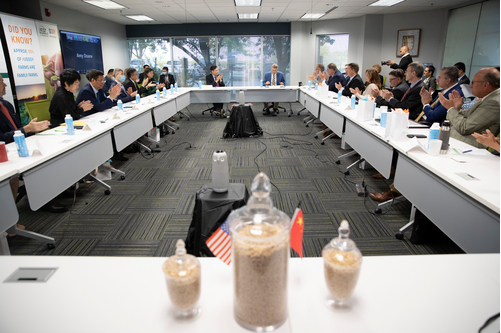 16日上午,圆桌会在密苏里州圣路易斯市美大豆出口协会总部举行,秦刚大使、美农业部代理副部长帮办贾森·哈夫迈斯特、农业农村部国际合作司副司长韦正林、美国腹地中国协会会长、前密苏里州州长霍顿、世界粮食奖基金会名誉主席奎因大使、美大豆出口协会主席苏健、艾奥瓦州农场主金伯利、中美农业领域企业代表和专家学者等线上线下共同出席。