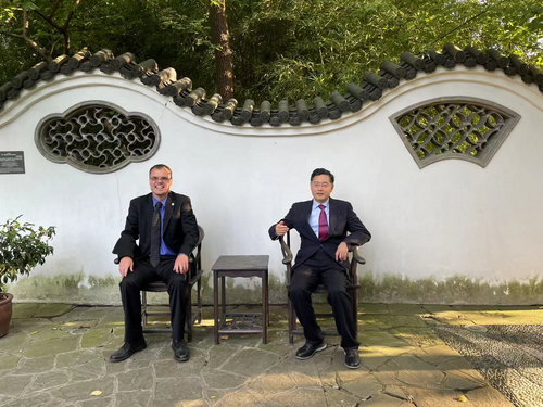 当天下午,秦大使还到访密苏里州植物园中国园。该园别称“友宁园”,是南京市1994年为纪念与圣路易斯市结好15周年在密苏里植物园内设计建造的中国园林,亭台楼榭、小桥流水、明式铜椅,一派中国江南园林景象,深受当地民众喜爱,已成为中美第一对姐妹城市友谊的美好象征。在园林里,秦大使还同当地华侨华人代表亲切交谈,感谢他们为促进双方人文交流做出的重要贡献。