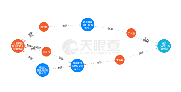 时代周报记者查询天眼查数据获悉,成立于2015年的两岸青年(厦门)股权投资基金管理有限公司,董事行列中就有福建七匹狼实业股份有限公司与晋江万沣投资有限公司(实控人为特步集团副总裁丁明忠)。此外,七匹狼控股集团和特步中国也共同参股晋江市商会投资开发有限公司。