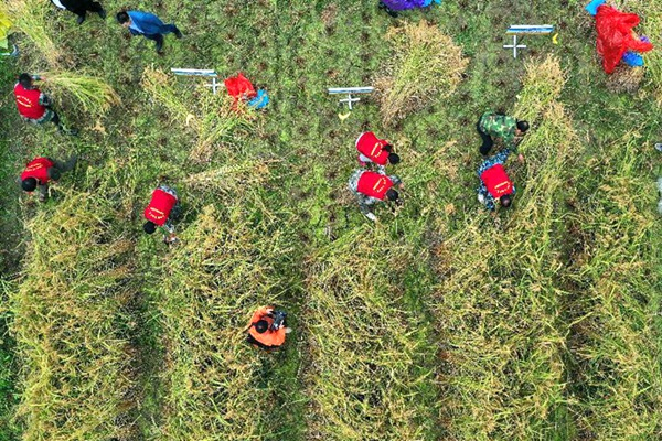 ▲重庆市大足区拾万镇长虹村试种的“巨型稻”丰收在望 (图片提供/视觉中国)