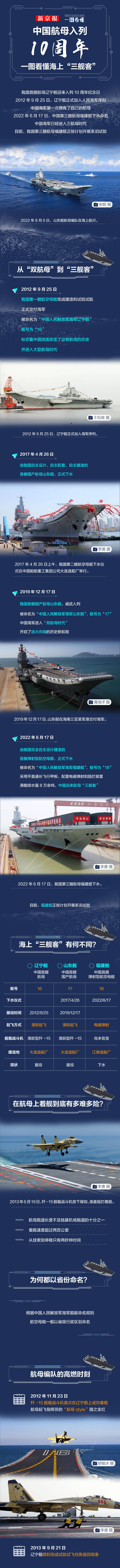 中国航母入列10周年 一图看懂海上“三舰客”(新京报)