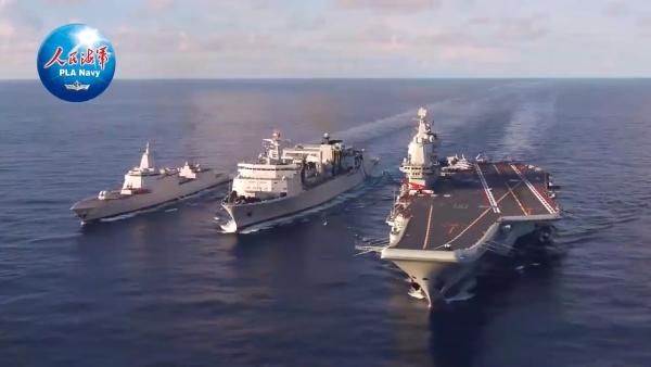 三舰同框,山东舰航母编队最新训练画面