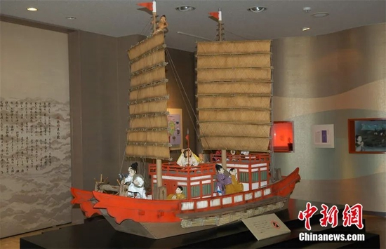 日本长崎县五岛市的三井乐町,是历史上日本遣唐使的起锚地,当地居民以此为荣,自号“遣唐使之乡”。图为当地颇具规模的遣唐使之乡馆内陈列的资料和模型。该馆如今已成当地观光热点。钟欣 摄