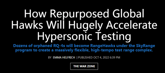 报道强调说,“空中靶场”项目是美国加速军用高超音速计划的重要举措之一,它不仅让退役的“全球鹰”找到了第二次生命,还有助于推动美国在全球高超音速竞赛中走得更远。