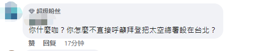 “你什么咖?你怎么不直接呼吁拜登把太空总署设在台北?” ↓