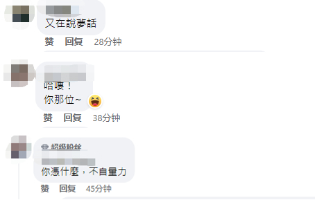 对于这番说辞,有岛内网友在脸书留言表示,“又在说梦话”;“你哪位”;“你凭什么,不自量力”。↓