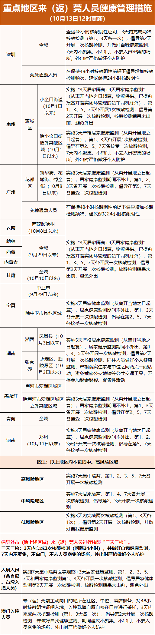 1. 全国重点地区来(返)莞人员健康管理措施