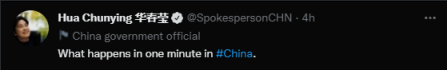 [环球网报道 记者 索炎琦]北京时间15日上午,中国外交部部长助理华春莹在推特连发20张图,通过“一分钟会发生什么?”的形式,细数中国近年来国内取得的瞩目成就以及辉煌的中外合作成就。