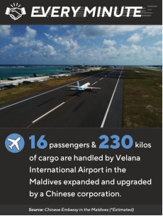 4。 每一分钟:16名旅客和230千克的货物在由中国企业扩建升级的马尔代夫维拉纳国际机场得到安排和运送
