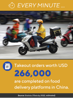 9。 每一分钟:中国的外卖平台完成价值26.6万美元的外卖订单