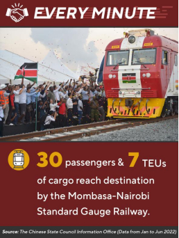 2。 每一分钟:30名旅客和7标箱货物通过蒙巴萨-内罗毕标轨铁路(蒙内铁路)到达目的地