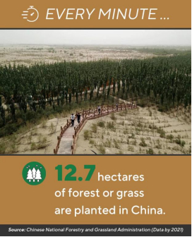 2。 每一分钟:中国新增12.7公顷的森林或草地面积