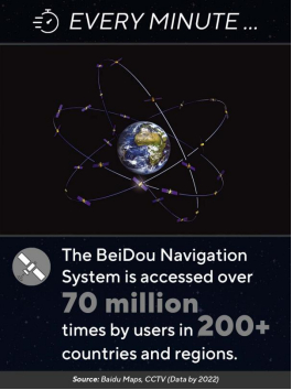 3。 每一分钟:北斗卫星导航系统被200多个国家和地区的用户访问超过7000万次